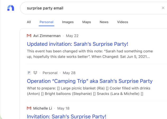 Neeva: Searching across personal accounts. Image Credits: Neeva