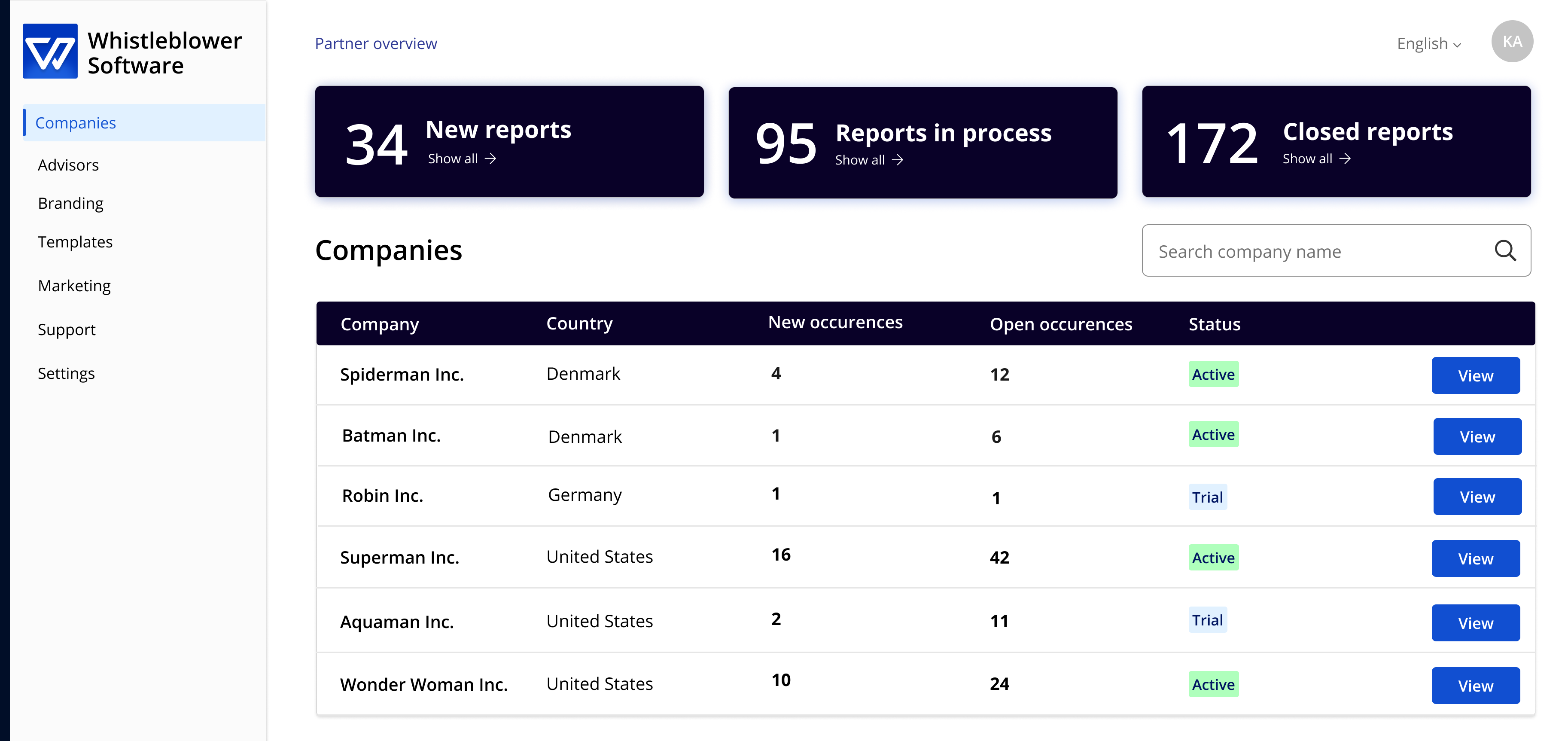 Lilholm says that they’re setting out to differentiate through a number of avenues, perhaps chief among them being how it’s distributing its software. While any company can sign up for its platform and pay a monthly subscription similar to any other SaaS, Whistleblower Software also offers a partner program that allows consultancies such as PwC, DLA Piper, Baker McKenzie, and BDO to “resell” the whistleblower technology directly to their own customers. Not only does this help Whistleblower Software scale, but it hugely simplifies things for the consultancies, as they are able to manage multiple whistleblowing channels for different companies through a single interface.