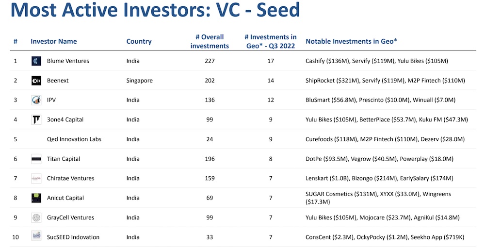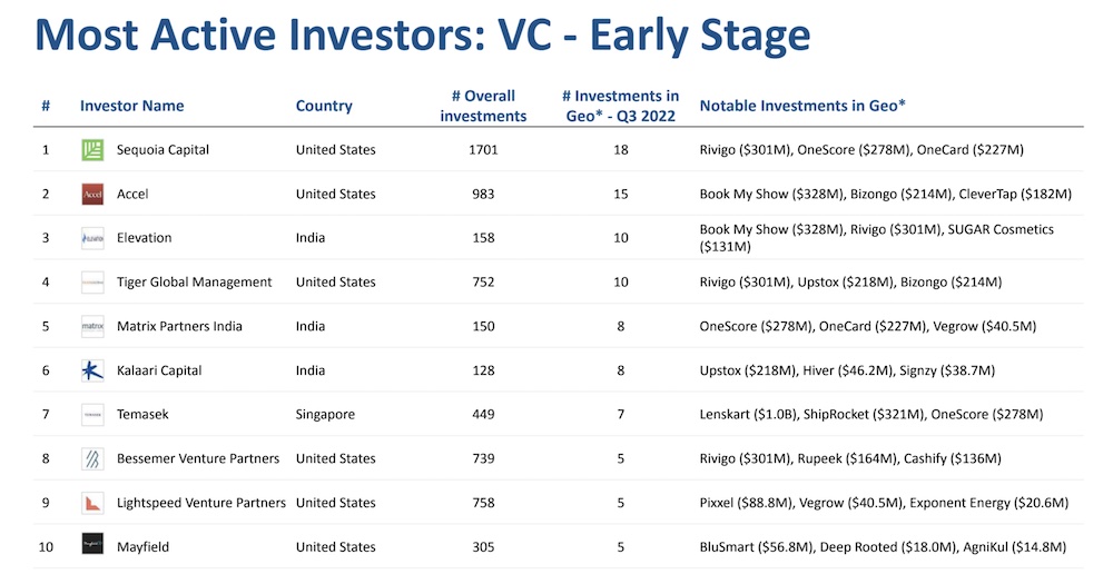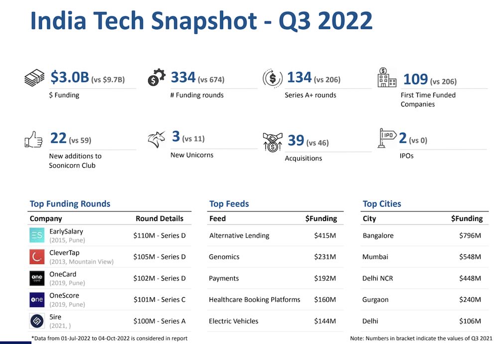 Indian startups raised $3 billion in the quarter that ended in September, down 57% from the previous quarter and 80% year-over-year, market intelligence platform Tracxn said in a report Tuesday. The figures are remarkable for many reasons, the most obvious being that startups are finding it difficult to raise capital at a time when most top tier funds in India — Sequoia India and Southeast Asia, Lightspeed Venture Partners, Accel, Elevation Capital, Matrix Partners India — have raised record large funds this year.