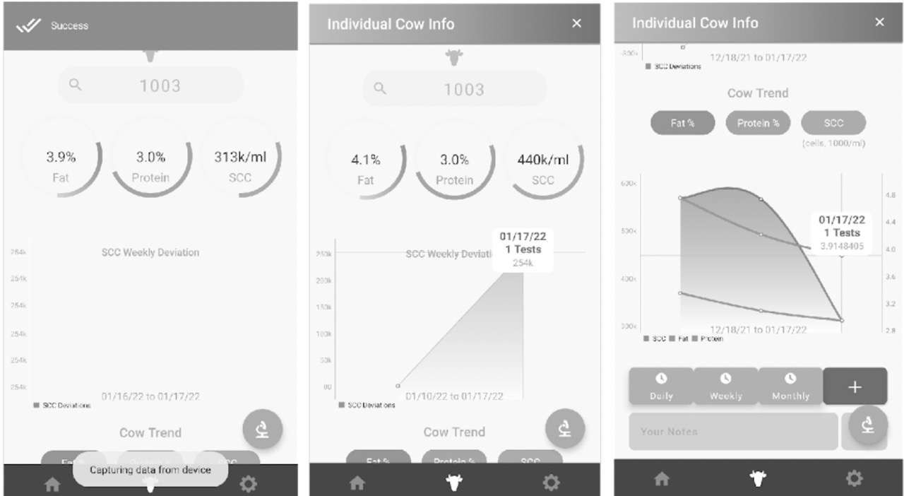 Labby tells TechCrunch that the device takes spectral measurements of milk samples and uploads them to the cloud. From there, the company uses machine-learning models to take spectral readings as inputs. It can estimate the content of the milk, broken down into fats, proteins and somatic cell counts. Once the measurements are taken and assigned to an animal, the farmers can use an app or any web browser to see the full testing history of any animal, to ensure they are going a-bovine and beyond in terms of milk production.