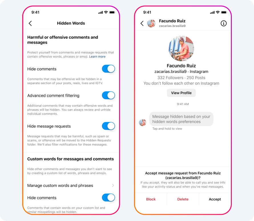 • Instagram is expanding its “Hidden Words” feature, which lets you filter out abusive DMs using keywords and emoji, to also cover replies to Stories and catch intentional misspellings made to avoid filters. It also expanded its preventative blocking tool to proactively block more accounts from the abuser and added more nudges to remind users about to post a harmful comment to be kind.