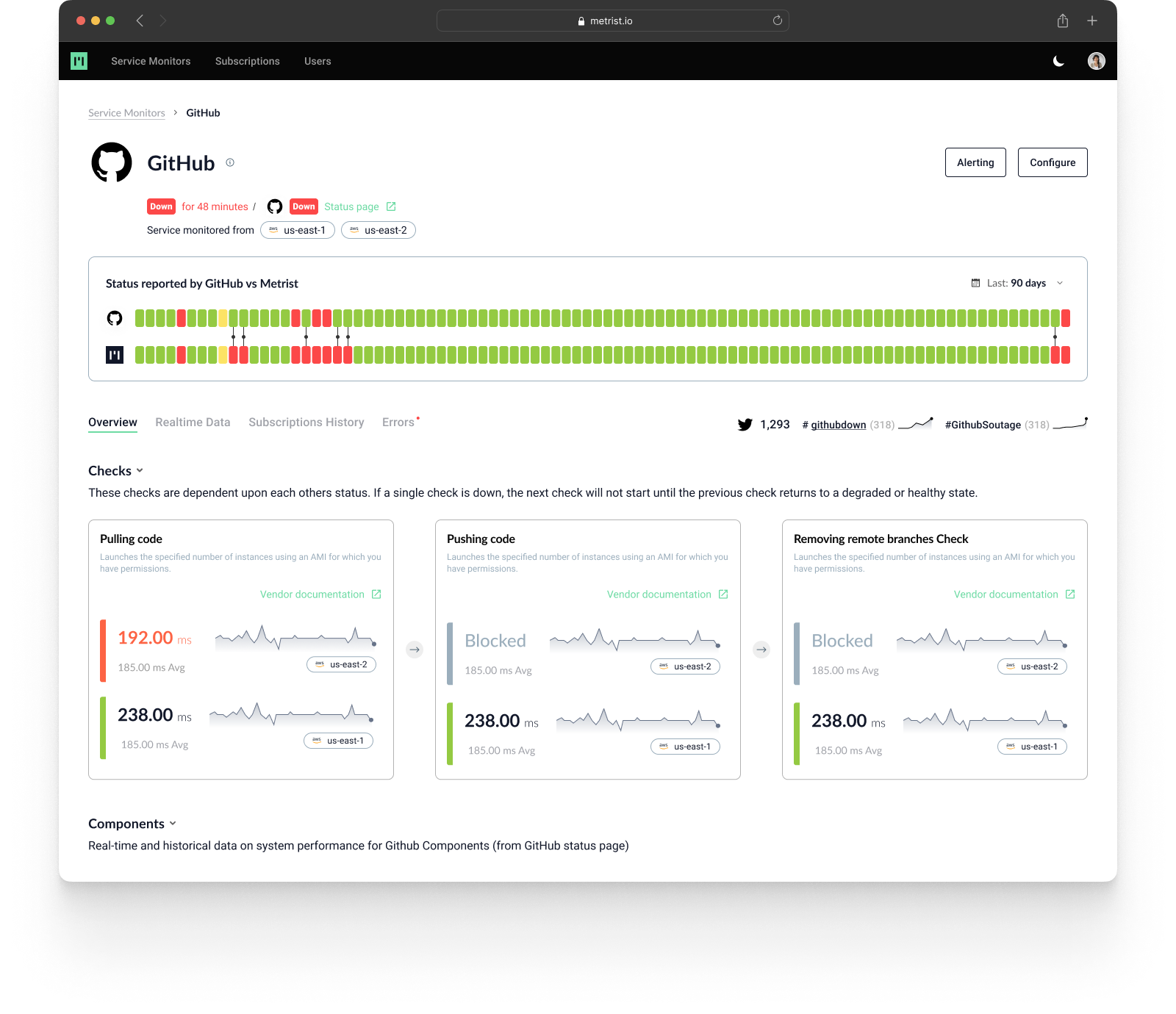 The overall idea behind Metrist is pretty straightforward, but there are surprisingly few companies doing this. While products like Twitter or StatusPage (which is now owned by Atlassian) allow companies to easily communicate issues with their services to their users, they don’t always reflect every problem and service degradation — something that then comes into play when it’s time to review an SLA agreement or a contract comes up for renewal and the two parties have vastly different perceptions of a product’s reliability. And while application performance monitoring and observability tools like New Relic or Honeycomb can give you some of this data, it’s not their core use case as these services tend to be inward facing.